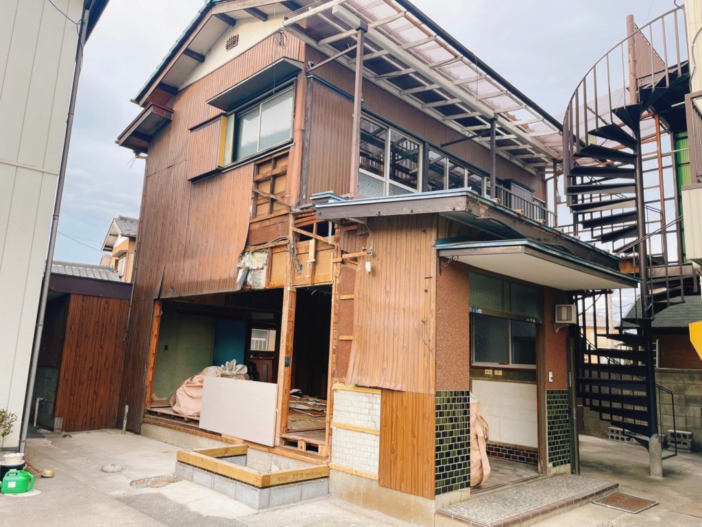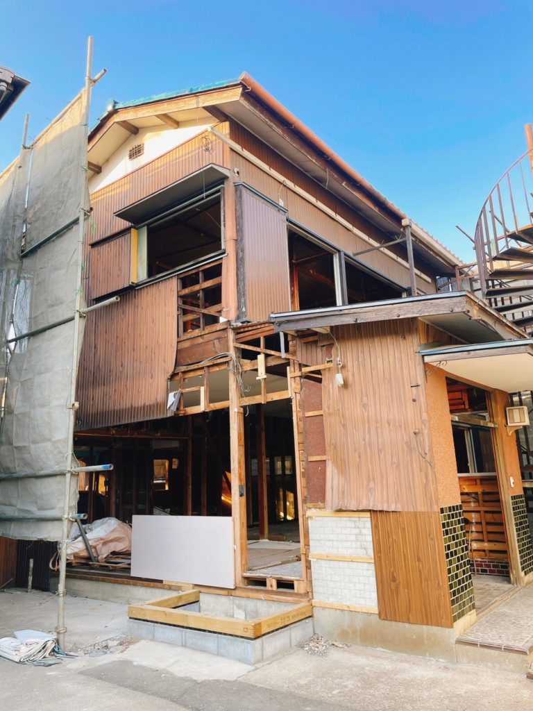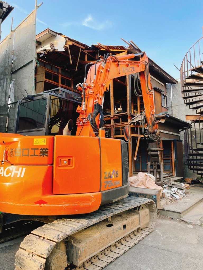 食堂兼宿舎の建て替えが始まりました。日々、食堂の解体も進んでいます。