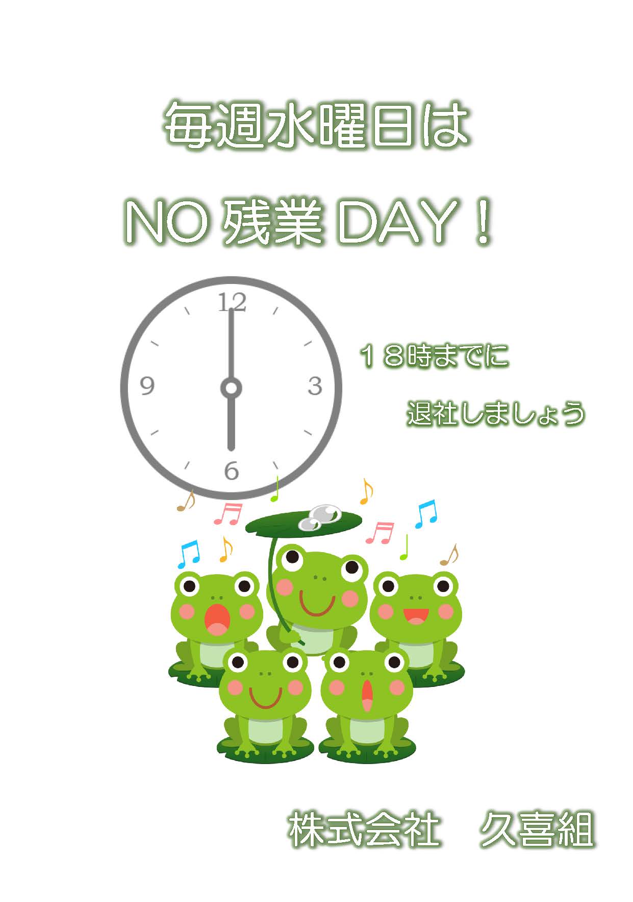 久喜組では、毎週水曜日は「NO残業DAY」に取り組んでいます。